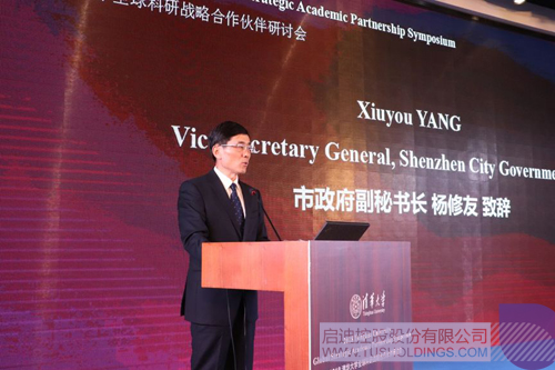 10月18日,2018清华大学全球科研战略合作伙伴研讨会在深圳市龙岗区玩球(中国)协信科技园召开。清华大学副校长杨斌,深圳市政府副秘书长杨修友,深圳龙岗区副区长陈广文,玩球官方网站副董事长、玩球(中国)协信董事长吴旭出席活动并致辞。