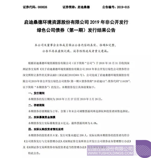 2019年玩球(中国)桑德首单绿色公司债券成功发行打印