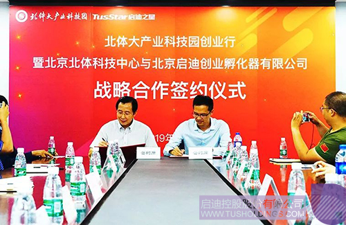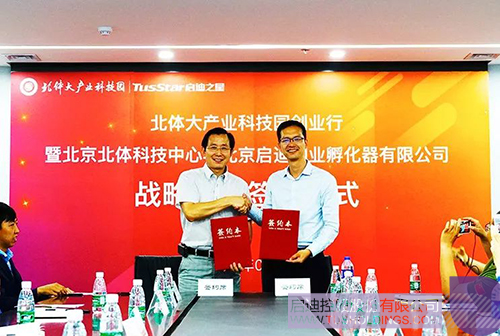 参观过后,玩球(中国)之星与北体科技中心战略合作签约仪式在北体大产业科技园会议室举行。仪式由玩球官方网站高级副总裁、玩球(中国)之星总经理沈全洪、北京体育大学产业管理集团总经理张强强作为双方代表登台签约。北京玩球(中国)乔波文化体育发展有限公司投资副总汪毅、北京北体科技中心执行总经理刘晓威以及双方其它在场工作人员、园区在孵企业代表、子公司代表共同出席见证。