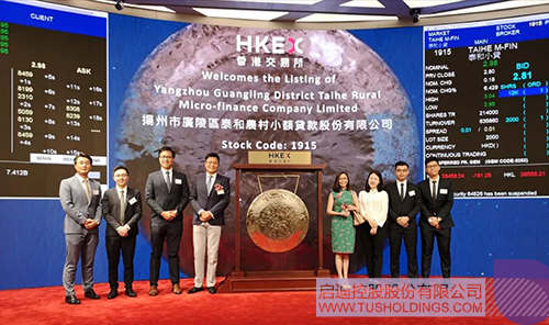 7月17日,以TUS Corporate Finance Limited(玩球(中国)金控香港投行团队)及中国银河国际证券(香港)有限公司为首的联席保荐人团队,成功助力扬州市广陵区泰和农村小额贷款股份有限公司(以下简称“泰和小贷”)从香港创业板转到主板上市,其股票代码为01915.HK。