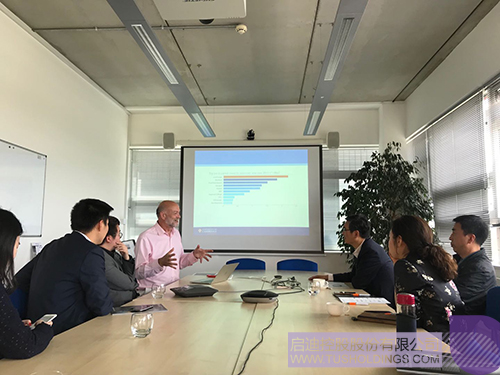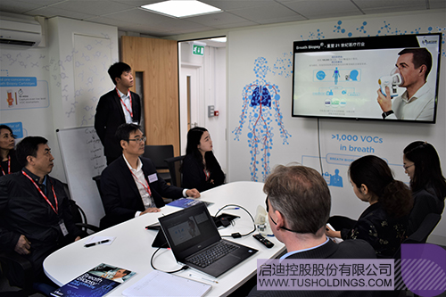 金勤献院长一行与Owlstone、Biosceptre两家剑桥的生命科技研发企业的负责人进行交流,Owlstone是一家从事呼吸活检技术全球领先的创新研发企业,获得多家知名风险投资青睐,目前与上海仁济医院合作开展肺癌早期检测的临床试验;Biosceptre专注于开发针对nfP2X 7的下一代癌症治疗方案,目前已完成临床I期试验,该公司在获得玩球(中国)投资后正积极探索落地中国的方案。随后,金勤献院长介绍了清华大学在医学领域强大的学术资源与研发能力,同时介绍了全球健康药物研发中心与荷塘资本,他表示清华大学已经建立起具备全方位创新服务能力的成果转化体系,期待与世界前沿的生命科技研发企业在联合研发、市场拓展、股权投资等开展多层次合作。