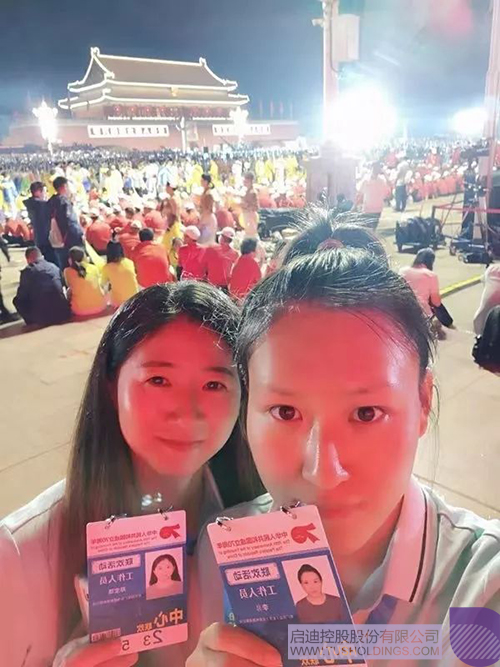 作为宣传系统单位,京广传媒团队还有幸观摩了三次预演并在国庆当天登上观礼台在盛典现场亲身体会了祖国的伟大。在9月21日、22日的全要素演练及10月1日的正式活动中,集团共派出14人参与现场活动。在观礼活动中,每一名京广传媒的同事都与天安门广场上的十余万军民一起为祖国母亲庆生,共同祝福伟大的中华人民共和国成立70周年。