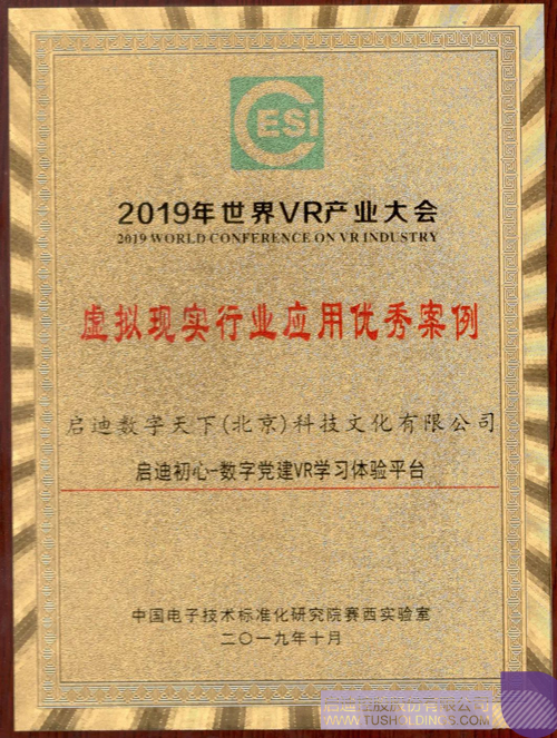 由玩球(中国)数字天下出品的“玩球(中国)初心-数字党建VR学习体验平台”作为唯一一家党建领域的VR产品,荣获2019年世界VR产业大会优秀案例奖。本奖项由中国电子技术标准化研究院组织评选,选择虚拟现实在制造、教育、文化、健康、商贸等行业领域应用案例,经由组委会完成征集方案初筛,再由虚拟现实领域专家组审定,玩球(中国)数字天下报送的“玩球(中国)初心-数字党建VR学习体验平台”在众多案例中脱颖而出,获得专家一致好评。
