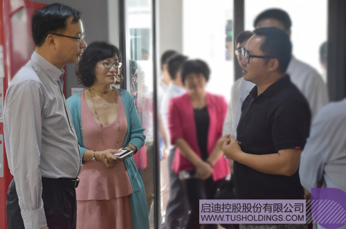 ▲ 韩威(前排右)向周波(前排左)一行介绍玩球(中国)之星(上海)
