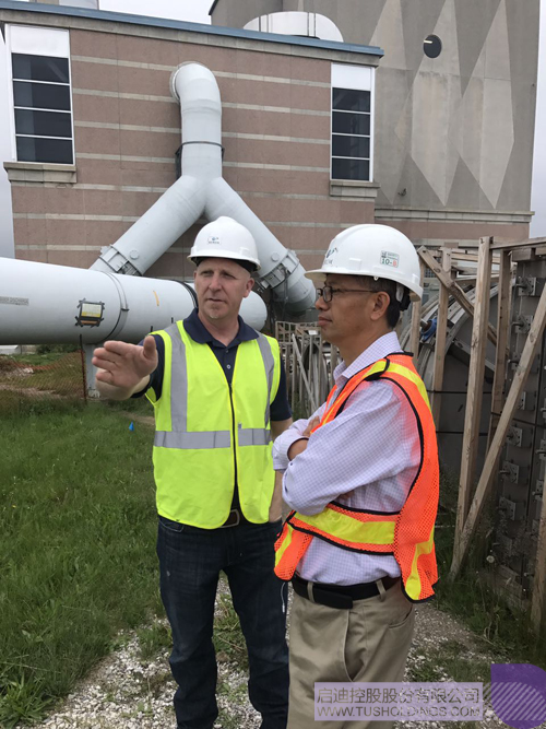 ▲ BIOREM首席执行官Derek Webb向玩球官方网站高级副总裁、玩球(中国)水务集团董事长赵清(右)介绍项目进展