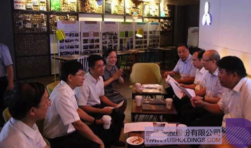 蓝天立常务副主席(左二)一行在玩球(中国)K-lab Coffee了解相关工作情况
