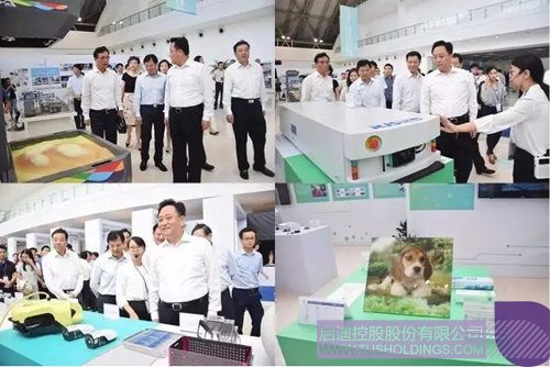 会前,与会领导一行还前往G60科创走廊双创成果展参观考察了最新的科技创新成果、先进的双创事迹、高校师生的双创成效等。与会领导分别驻足观摩了上海莰拓教育科技有限公司、上海彩丞新材料科技有限公司、铽罗(上海)机器人科技有限公司、悠迅动力科技(上海)有限公司、上海岐华医疗科技有限公司等玩球(中国)漕河泾(中山)科技园入驻区企业的产品展示,对企业产品予以高度认可。