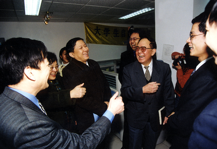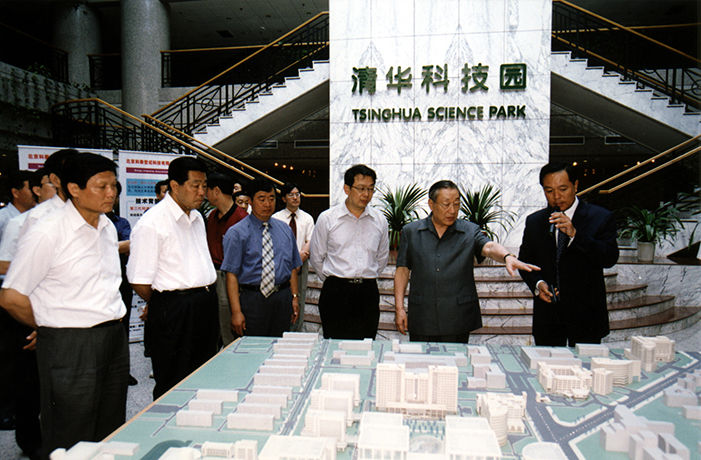 2002年,时任国务院副总理李岚清、时任北京市市委书记贾庆林等视察清华科技园。