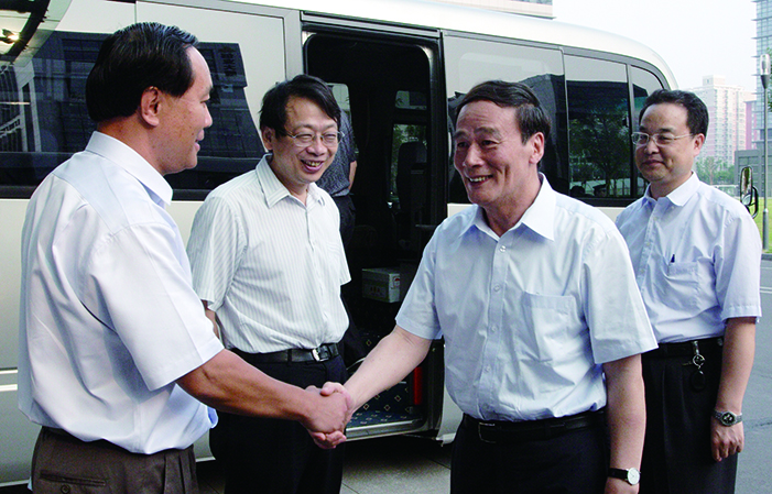 2006年,时任北京市市长王岐山视察清华玩球(中国)。