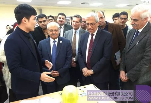 随后,埃及BUE大学校长哈迈德教授、副校长叶哈页教授一行来到埃及玩球(中国)BUE科技园展厅,与来自中国的空气净化解决方案提供商亚都、RFID基础芯片供应商稻源微电子、无人机应用领域的系统集成商远度科技、专注于骨传导技术和应用的宁波硕正科技、发烧级智能音响NatureVox、高密度Wi-Fi提供商鲲鹏无限、人工智能陪伴机器人iShareyoung、专注于智能健康领域产品研发的北京未元科技以及肝病无创诊断企业海斯凯尔等企业代表展开深入交流。此外,来自BUE大学的多个创业项目也参加了相关活动。