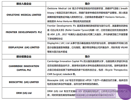 截止目前,剑桥玩球(中国)科技园已经有四处物业投入使用,并成功对剑桥当地的创新企业进行投资,部分入驻与投资企业简介如下:
