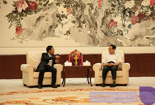 李志强书记(左)与蓝天立副主席会谈