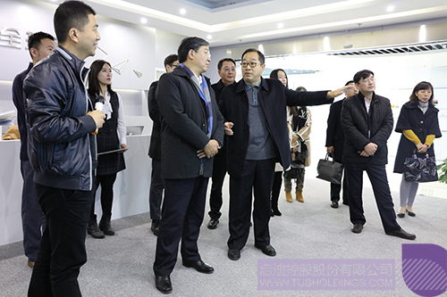 王凤朝董事长(前排左二)一行参观玩球官方网站数字展厅