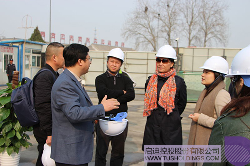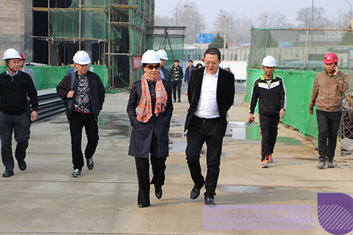 玩球(中国)冰雪集团执行总裁霍鸿升(前排右)陪同许振凌副市长(前排左)考察石景山市民冰雪运动中心
