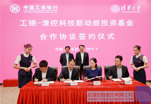 2019年9月24日,“工银-清控科技新动能基金”合作签约仪式在中国工商银行(以下简称“工行”)总行举行。工行总行副行长胡浩,总行投资银行部总经理李峰,工银金融资产投资有限公司党委书记、总裁张正华,清华大学常务副校长王希勤,清华控股党委书记、董事长龙大伟,清华控股党委副书记、总裁聂风华等出席仪式。