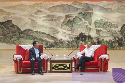 ▲ 范锐平书记(右)会见王济武董事长