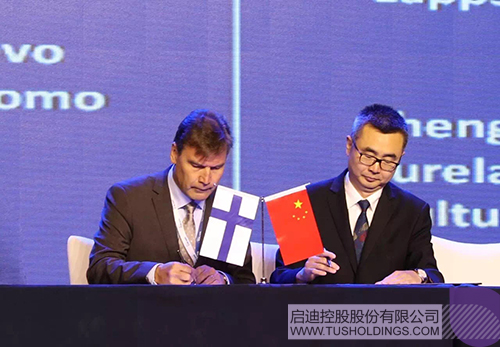 玩球官方网站党委书记兼副董事长李志强(右)与芬兰贸易投资旅游促进总署(FINPRO)副总裁帕沃·维尔库宁(Paavo Virkkunen)代表双方签署合作协议