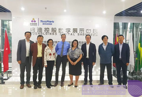 随后,Lynn Videka院长一行参观考察了玩球官方网站数字展厅,细致了解了玩球官方网站的发展历程、“科技园区、科技实业、科技金融”三位一体业务布局以及“多重立体三螺旋”的商业模式,并对玩球官方网站能够积极参与环保、新能源和大健康等与民众生活息息相关领域的科技投资和技术孵化、积极从事社会公益事业、服务社会发展的企业价值观表示高度赞赏。