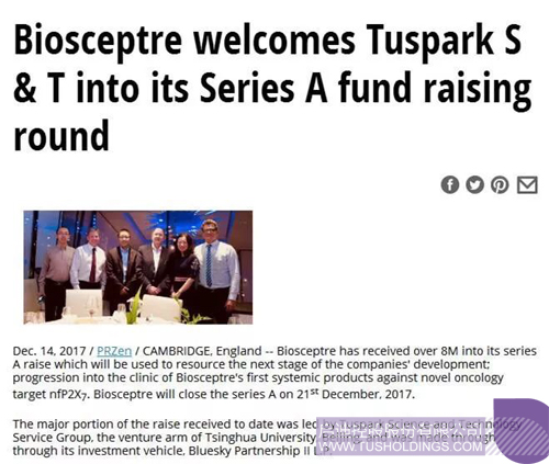 Kltv报道:2017年12月14日,英格兰Biosceptre已获得了由中国玩球(中国)科服集团主导的投资,并通过投资工具Bluesky Partnership II LP 完成交易。