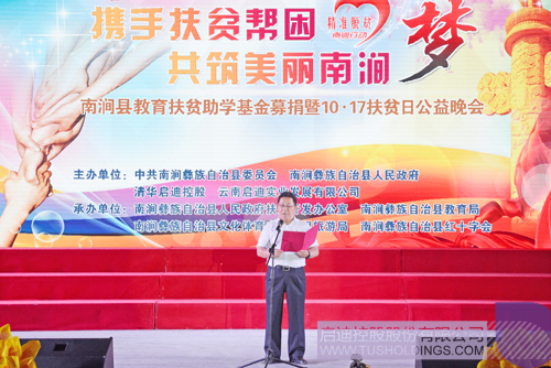 10月16日晚,以“携手扶贫帮困,共筑美丽南涧梦”为主题的南涧县教育扶贫助学基金募捐暨10·17扶贫日公益晚会成功举办。大理州扶贫办主任李德琦,吉向阳、王绍基、沈文荣、黄希里,南涧县委副书记茶向华、武绍华,清华大学云南校友会秘书长万林,清华校友、中国建筑技术集团有限公司副总建筑师吕絮飞,清华大学挂职干部、南涧县政府党组成员金峰,南涧县西山村委会第一书记沈正波等出席晚会,陈禹作为玩球(中国)代表受邀参加。