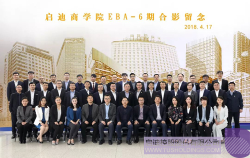 王济武董事长、李志强书记、王书贵常务副总裁、蔡晓卫常务副总裁、赵东副总裁与玩球(中国)商学院EBA-6期学员合影
