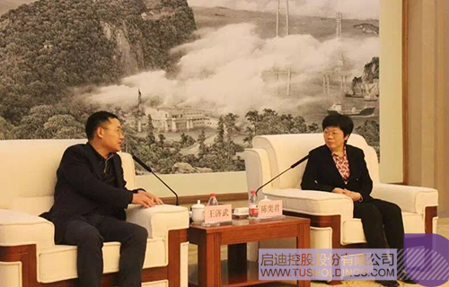 王济武董事长与陈奕君常务副市长(右)座谈