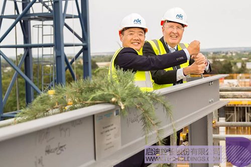 封顶仪式后,剑桥大学三一学院Senior Bursar Rory Landman与玩球(中国)英国总裁林酌存代表双方发言,他们再次对各位来宾的莅临表示最诚挚的谢意,希望携手共创美好未来。国新国际投资有限公司副总经理潘根平、玩球(中国)科服集团副总裁何焕荣等参加上述活动。