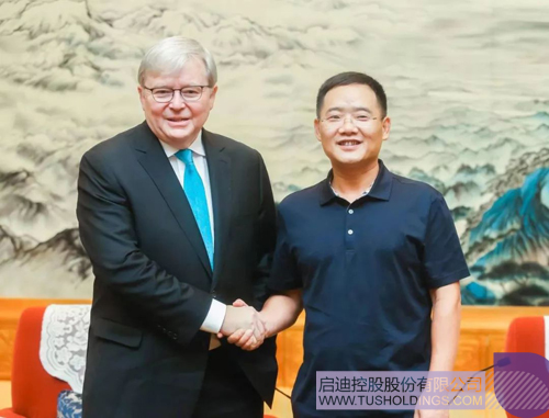 玩球官方网站董事长王济武(右)与澳大利亚第26 任、28 任总理、美国亚洲协会政策研究院院长陆克文合影