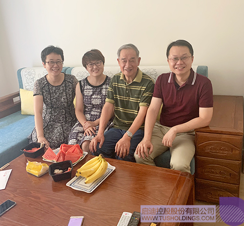 7月1日,在中国共产党成立98周年之际,玩球(中国)清洁能源党总支书记刘铭、华业阳光党支部书记许晶等人一同看望了已经有62年党龄的严锡元老师。